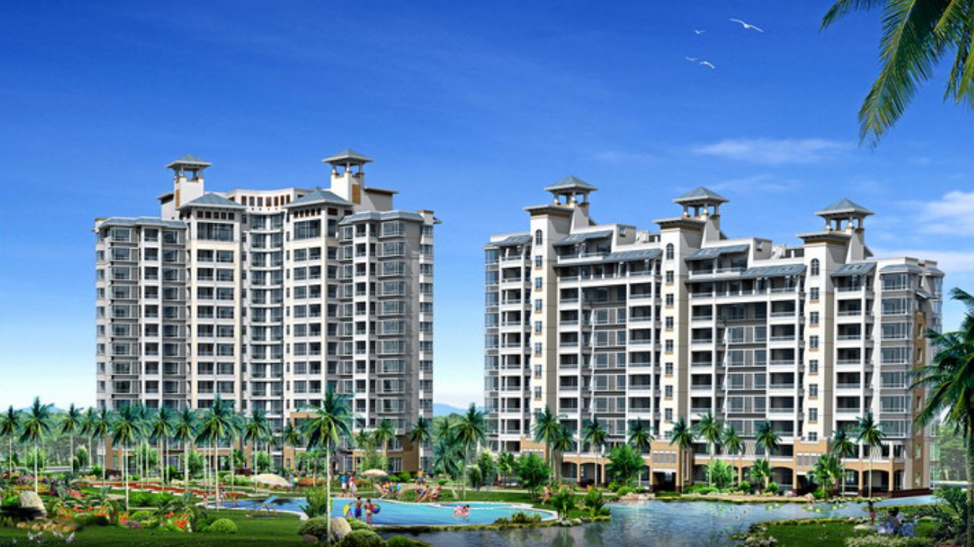 “兆南西海豪园”建设用地最大的特色就是其滨海景观,该项目由于用地与大海沙滩有一路相隔,且其前方尚有新国宾馆等现有建筑物遮挡视线,因此在设计中通过抬高地形的手法来弱化这种阻隔与遮挡,使之对本项目的视线遮挡达到最小,从而使景观得到最大的利用。规划中从北至南以退台的阶梯模式布置别墅、公寓楼,尽量减少建筑物的前遮后挡,让海景资源得到共享,最大发挥用地的景观价值。“兆南西海豪园”是一个具有294户的旅游度假村,除了拥有外部的自然美景,其自身内部还有良好的环境和配套供居民休闲、游乐观景。 在规划中通过两条蜿蜒曲折的水系由南至北贯穿社区,使水系周边的别墅区具有很好的亲水性。水系在用地的南侧,与度假公寓及综合服务楼共同组成本社区的中心景观,增加了各组团景观的相互联系和环境空间的相互交融,使社区形成一个整体的空间环境。综合服务楼设在小区的东南面,这里既是社区的主出入口,又是度假公寓与别墅的交界区域,这样综合服务楼可以更好的为社区内部服务。
